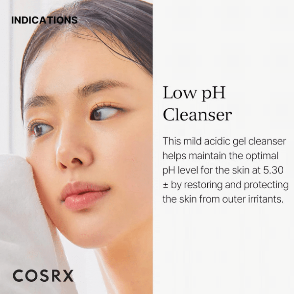 COSRX Low pH Good Morning Gel nettoyant au pH faible qui purifie la peau en douceur, élimine les impuretés et respecte l’équilibre cutané.