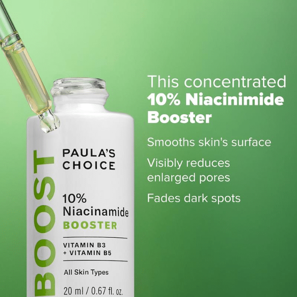 Paula’s Choice 10% Niacinamide Booster 20ml aide à réduire l’apparence des pores, réguler le sébum et améliorer l’éclat de la peau.
