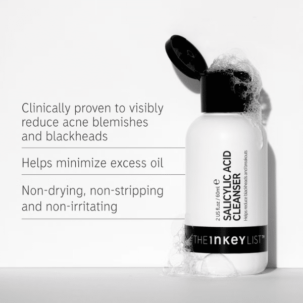 Formulé avec 2% d’acide salicylique, The Inkey List nettoyant acide salicylique agit comme un exfoliant doux pour désobstruer les pores et réduire l’apparence des imperfections. Sa texture légère nettoie en douceur tout en régulant la production de sébum, pour un teint plus clair et uniforme. Convient aux peaux mixtes à grasses, sujettes aux boutons et points noirs. Idéal pour une routine quotidienne pour prévenir les imperfections et améliorer la texture de la peau.